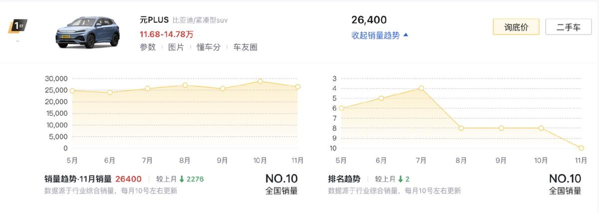 这个月,紧凑型SUV市场的TOP3完成了品牌的轮替,而并非是比亚迪一家独大。当然,我们还是看见了比亚迪元PLUS(第1名)在这个细分市场中的领先,稳健的家族设计对于家庭而说更耐看,DiLink与DiPilot虽不是最优版本,但却能带给家庭最好的实用性支持,加上刀片电池的可靠性,确实能让家庭出行事半功倍。