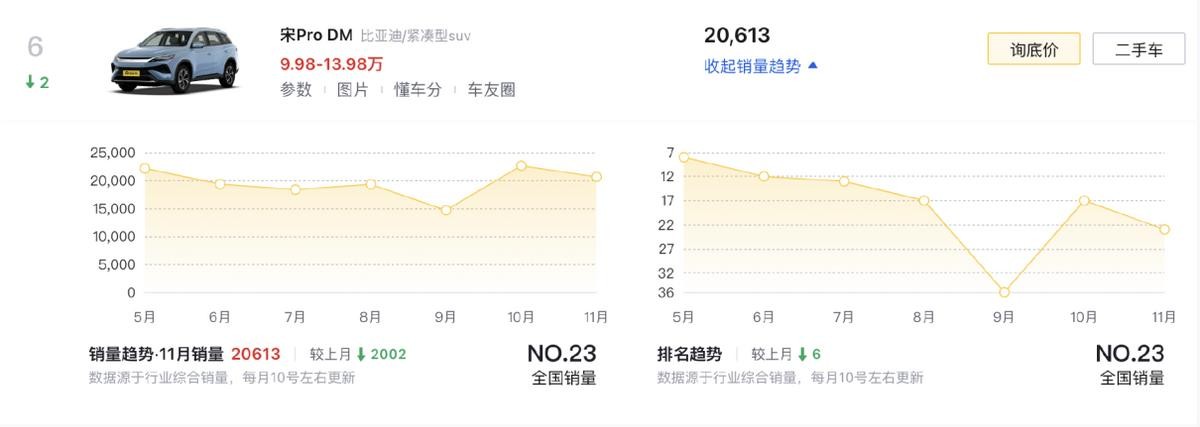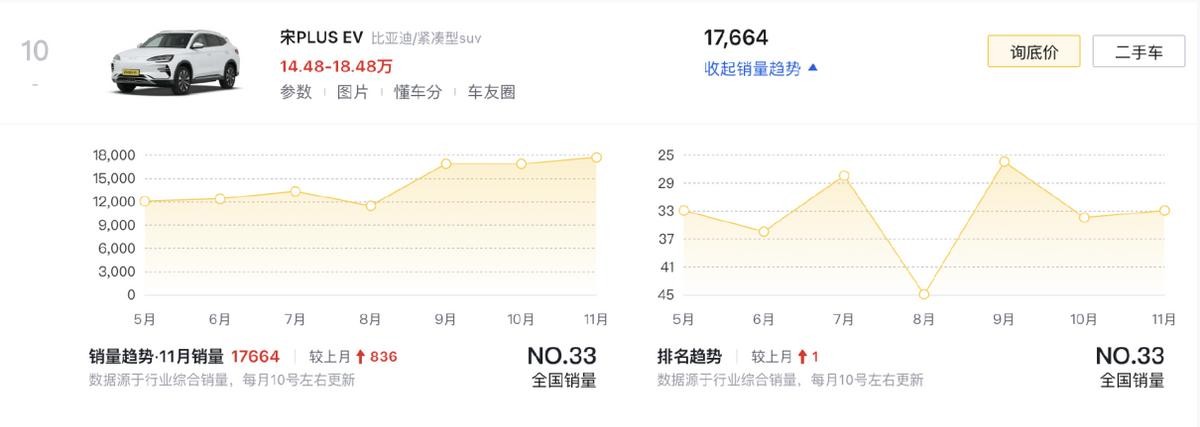 比亚迪宋PLUS EV(第10名)的畅销说明了宋家族双动力布局的成功性,e平台3.0下的三电技术让车辆保持了在真实续航兑现率、性能稳定性等方面的优势,尽管补能不是它的优势,可要智能有智能、要舒适有舒适,也没什么明显短板,这不就是家庭用户想要的吗?