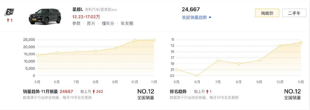 乘联会公布的11月全国乘用车零售统计数据为242.3万辆,在同比增长16.5%的情况下,我们看到了SUV市场的全面提升,不仅是新能源成为了主流、SUV也成为了主流。而对于绝大部分家庭用户来说,覆盖了10-20万级市场的紧凑型SUV一直都是主要消费品。那么,在这个月最畅销的10款紧凑型SUV都有哪些?又各自有哪些亮点呢?我们这就来一一揭晓。