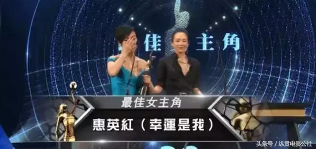 惠英红凭英皇电影《幸运是我》封后夺得「最佳女主角奖」殊荣,从章子怡手中接过了她的第三座最佳女主角的奖杯,激动落泪