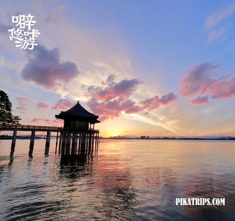 浮御堂位于湖边,有点西湖凉亭的感觉,很有意境,且凉亭已有千年的历史呢