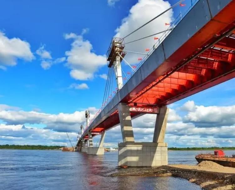 黑龙江大桥使用钢混叠合斜拉桥设计,施工难度也是很大的,桥的主体全钢结构长1284米,宽14.5米,我国负责施工兴建,由中铁工业全权负责施工监管。