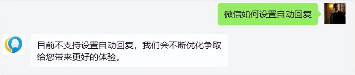 通过腾讯客服所知,微信聊天目前不支持设置自动回复,如下图所示: