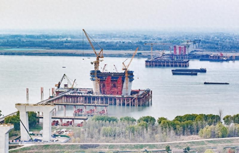 目前,池州长江公铁大桥已经进入南主塔中塔柱施工阶段。近日,记者来到长江池州段离南岸大堤约380米处的江中施工点,实地探访大桥南岸工程建设情况。