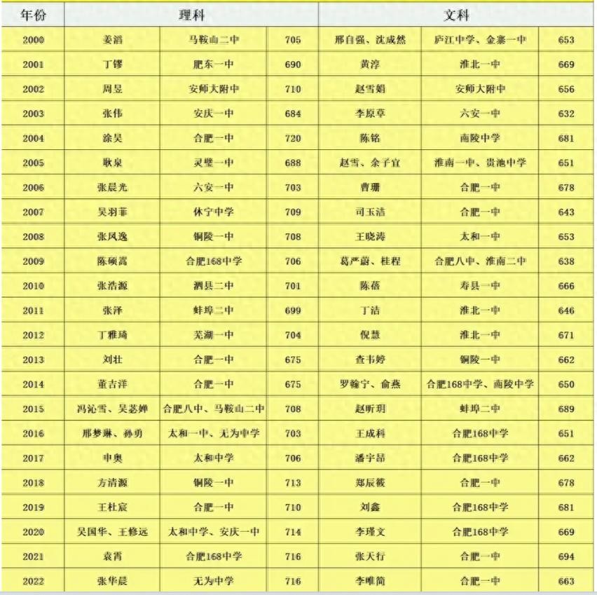 最近20年安徽高考状元都来自哪所高中?