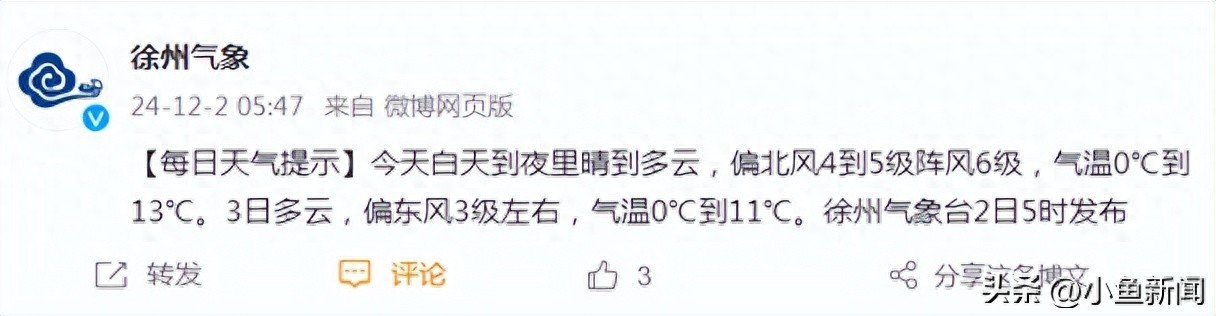 徐州气象台今晨发布