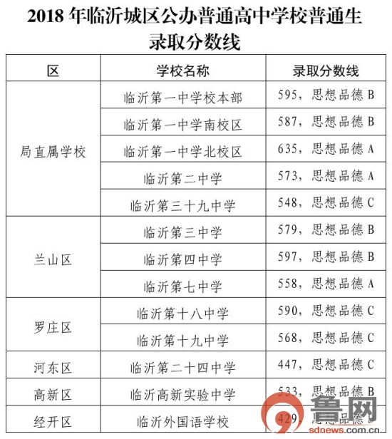 鲁网临沂7月10日讯(记者 安娜) 近日,2018年临沂城区公办普通高中学校普通生录取分数线及录取名单已公布。考生可登陆临沂市教育局官网