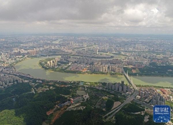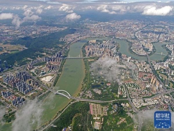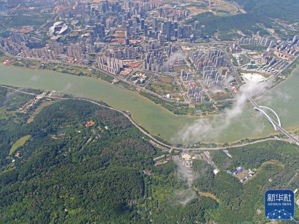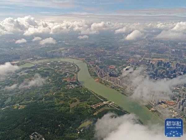 夏日,邕江广西南宁市城区段景色秀丽,构成一幅和谐的生态画卷。