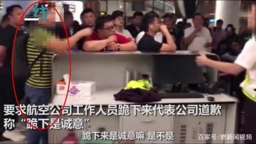 5月26日下午,郑州新郑机场部分航班因为天气原因而延误。旅客们十分焦急,围着航空公司的工作人员讨说法,其中,有一名男子竟让工作人员跪下来道歉,还理直气壮,引起了网友们的愤怒。