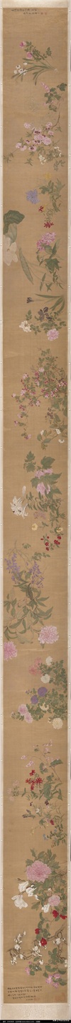清·恽寿平没骨画精品《百花图卷》32×228cm 、手卷 、绢本,美国大都会博物馆藏
