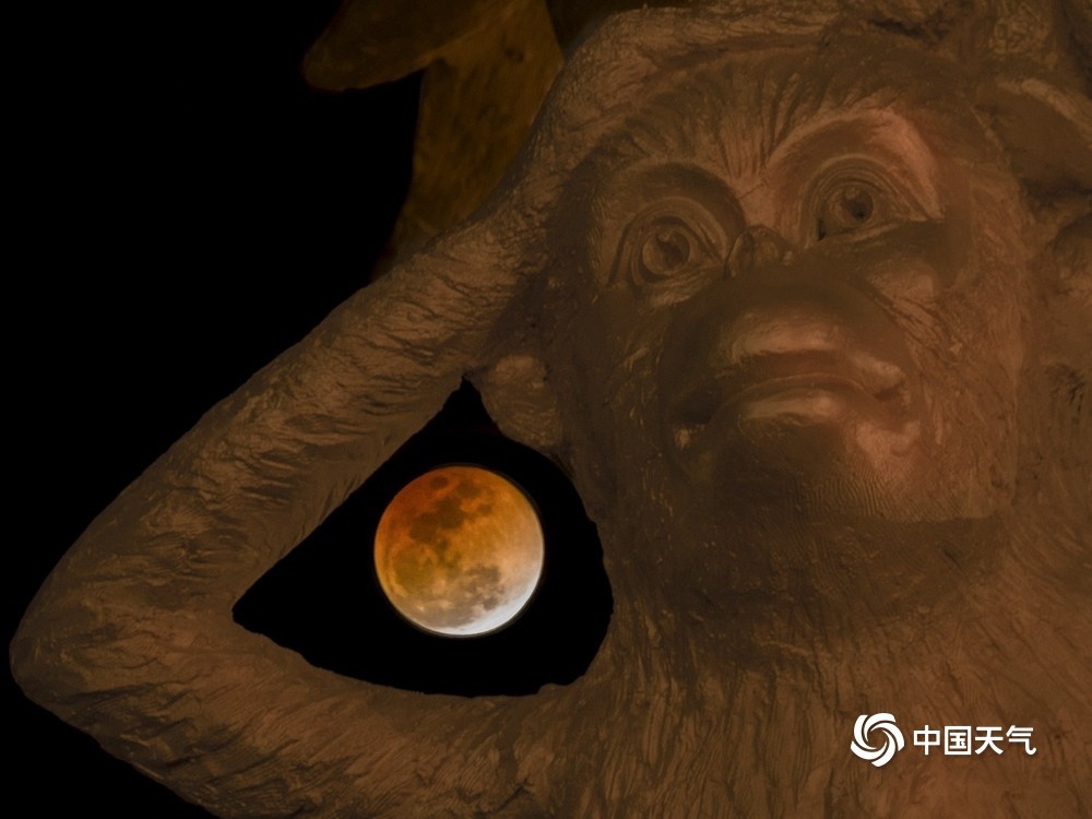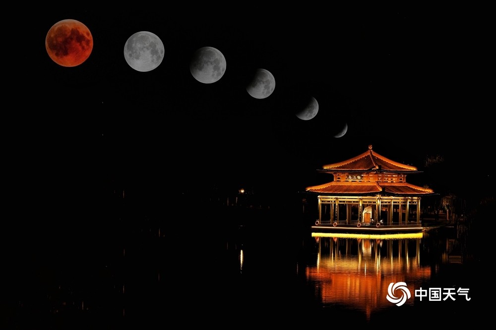2018年7月28日,西安上演“火星大冲”和本世纪最长月全食大戏,图片拍摄于曲江亭。(签约供稿人/视觉中国/版权图片 来源视觉中国)