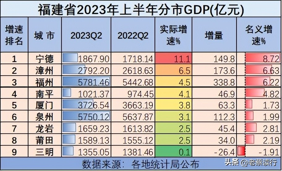 福建各市GDP出炉,宁德增长11.1%,三明增长0.1%