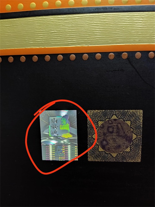 第二点看一下酒盒上的镭射边,下图圈中的地方,真的是用手抠不掉的
