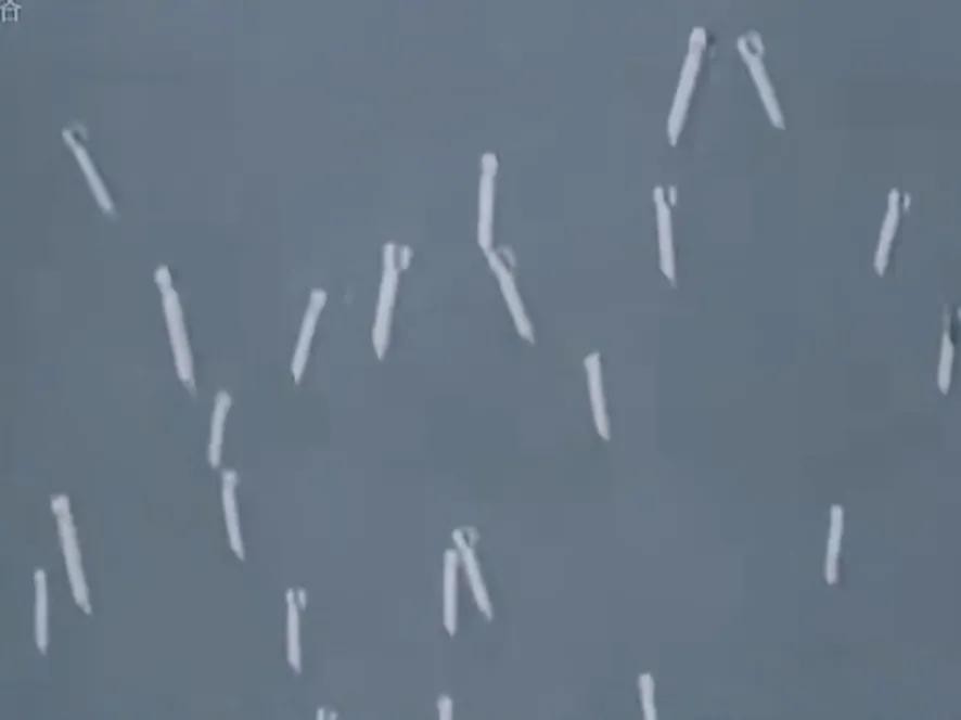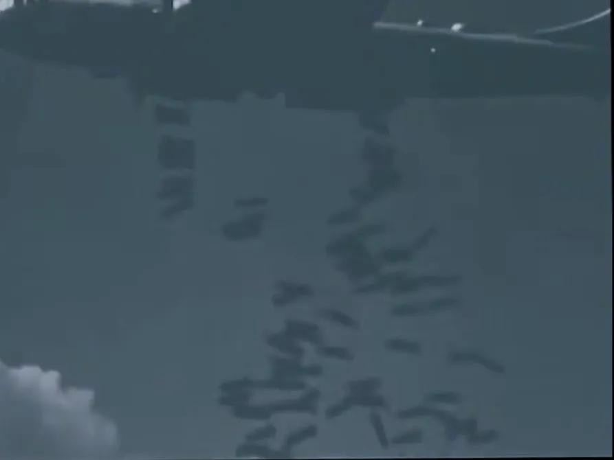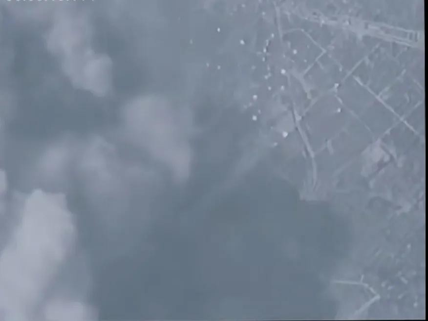 这是1945年东京大轰炸的真实画面,8000多吨的燃烧弹,从战略轰炸机上倾泻而下,落到该国当时最热闹繁荣、大多数建筑物都是木制结构的东京,。