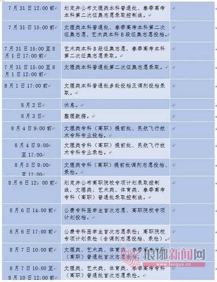 高校招生录取进度表