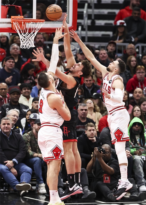 当日,在2023-2024赛季NBA常规赛中,芝加哥公牛队主场124比119战胜休斯顿火箭队。