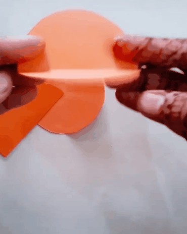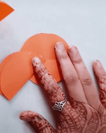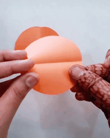 3.取第三片圆形纸片对折,夹在第二片纸片里。