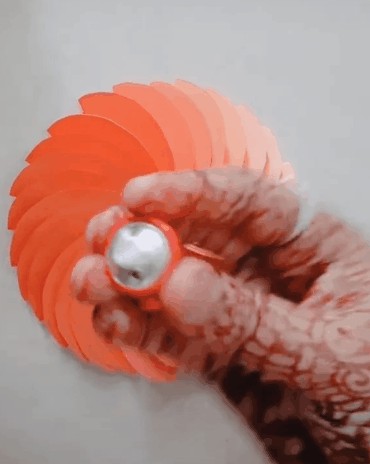 4.依次类推,我们将更多的圆形纸片对折,放在第一片的上面,排列成圆形。