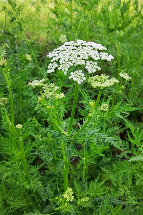 蛇床是伞形科蛇床属一年生草本植物。茎直立,有分枝,疏生细柔毛,具纵棱;基生叶矩圆形或卵形,叶鞘短宽;上部叶柄具白色叶鞘,叶卵形至三角状卵形,顶端呈尾状,具白色尖头;末回裂片狭条形或条状披针形,复伞形花序,条形至线状披针形;花柱基部隆起;双悬果宽椭圆形。花期4-7月,果期6-10月。[5]由于蛇虺喜卧于下食其子,故有蛇床、蛇粟诸名。[6]