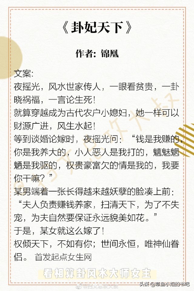 风水大师女主文《卦妃天下》《七十年代神算生涯》等我给你算一卦