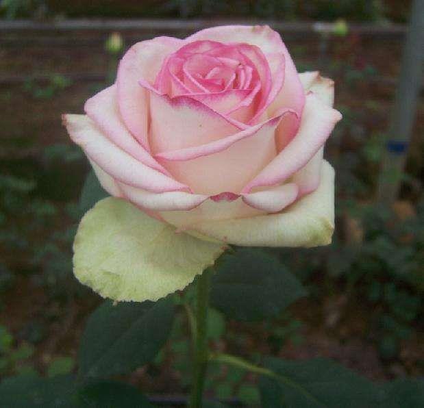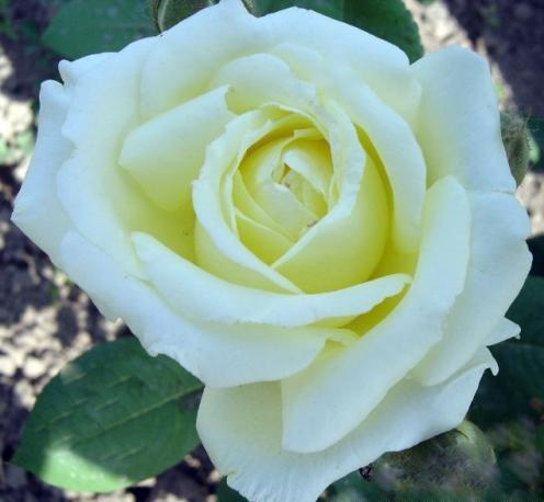 2、白雪山 1963年在美国培育,花色纯白,高心卷边,盘状,花径12-14cm,花瓣约25枚,气味芳香,叶片较大,刺小而多,植株高大强健,抗逆性和抗病性强,适合地栽。