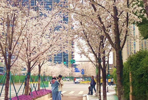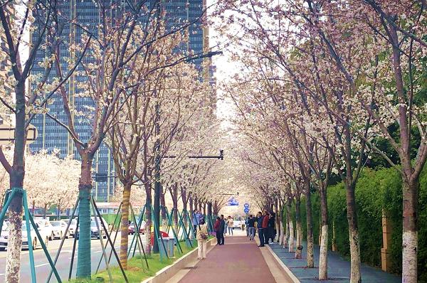 江北新区樱花大道(央广网记者 庄滨滨 摄)