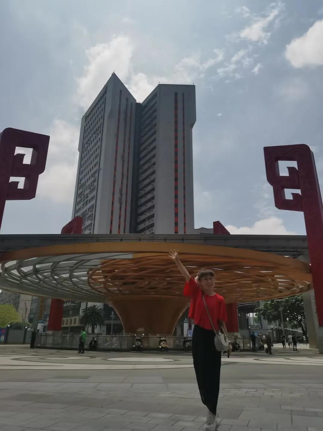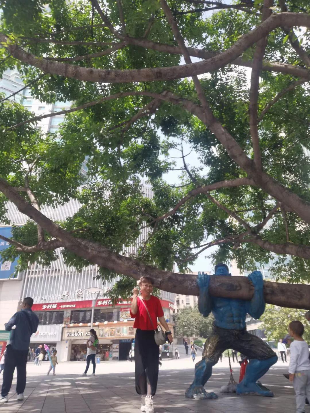 从巴国城出来,乘公交很快就抵达杨家坪步行商业区。这里没有解放碑拥挤喧闹,广场树木围栏椅可供随时坐下小憩,少了熙攘喧嚣,感觉更舒心惬意。在这里的新世纪百货大厦购买了一个小提包,也算是520的收获吧!