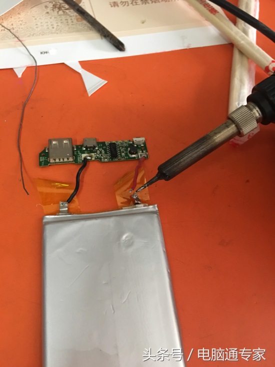 如图大家应该非常清晰的看见了吧,如果大几十块钱或一百多块钱买个充电宝,只是线头虚焊掉焊了就扔了是不是太可惜了呢?建议家中备一个小焊接器,在小地摊了买个小焊接器估计就是5元钱。以备不时之需。如果是尾插充电口坏了你就找维修的给你焊下,手工费20元左右,这个你自己是焊不了的哦,需要长期一定的焊接基本功的。