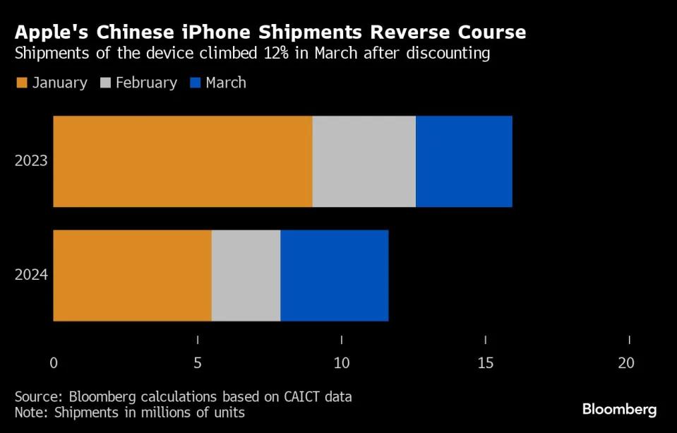 苹果努力挽回在华销量:促销季起效 iPhone在3月出货量飙升12%!