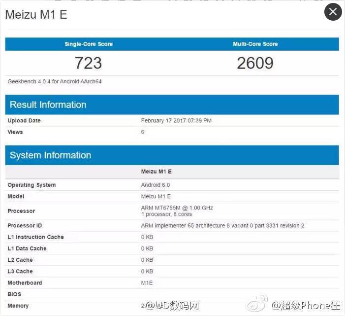 网曝魅族M1E配置:4.6英寸1080P屏幕,依旧是联发科MT6755处理器,3G+32G,运行安卓6.0.1。