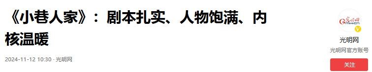 《小巷人家》:剧本扎实、人物饱满、内核温暖 2024-11-12 10:30·光明网