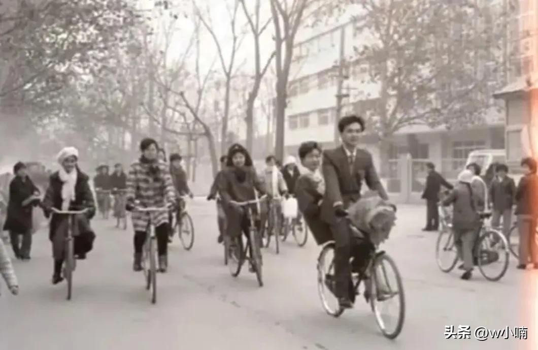 3.1990年春节,在陕西西安“飞机城”阎良区,每天都可见一些胸挂红花的新郎用自行车驮着新娘从大街小巷经过。那个年代,用自行车接新娘曾经一度成为流行的结婚方式,特别是春节这段时间,结婚的人也特别多。