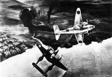 1943年4月18日早晨,山本搭乘两架三菱一式陆攻快速运输机从拉包尔按时起飞,计划飞行315分钟。不久,18架加挂副油箱的P-38式战斗机从瓜岛机场起飞。东京时间9点43分,被美军拦截,机毁人亡。