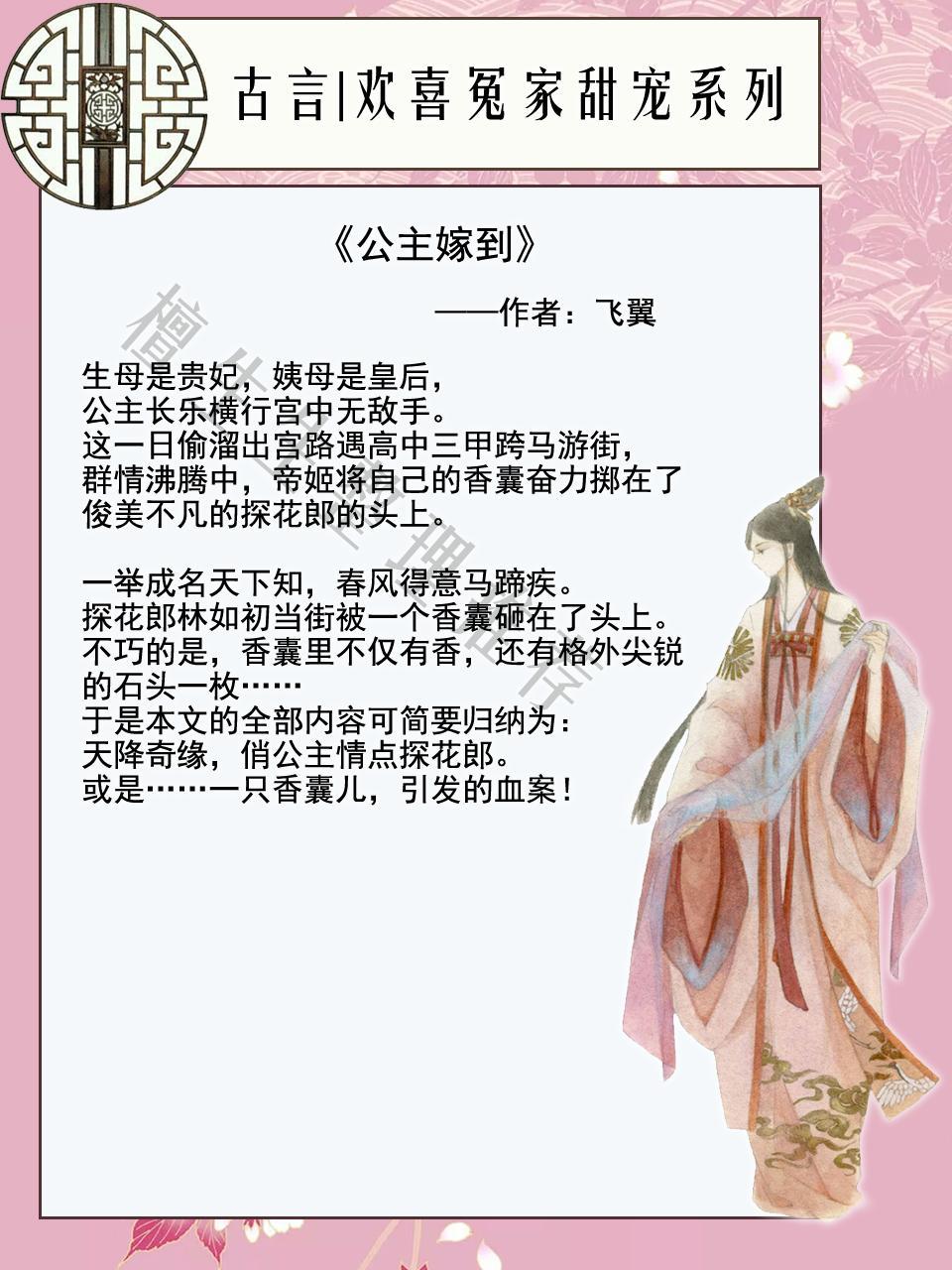 本文描写了一位备受宠爱的皇家公主与一位春风得意世家出身的探花郎相遇相知相恋的故事,文章轻松幽默,剧情甜爽,皇家纷争与侯府爵位争夺交错其中,是一篇闲暇之余放松心情的文章。
