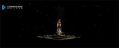前期拍摄抠像的粒子化、线条化包装,背景LED影像形成虚拟舞群,雾化膜成了“虚拟领舞”。