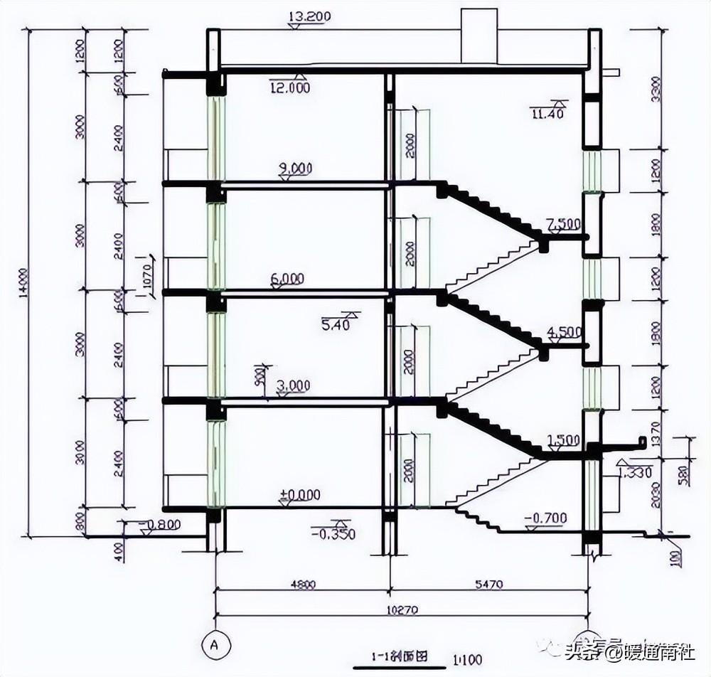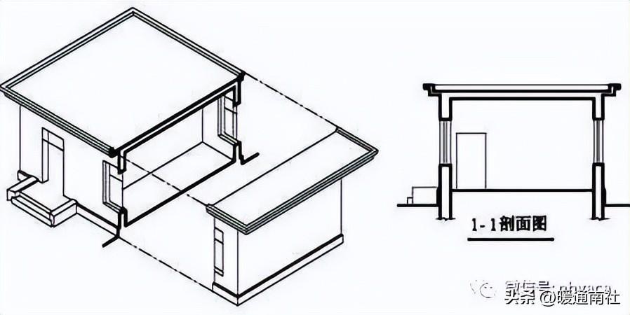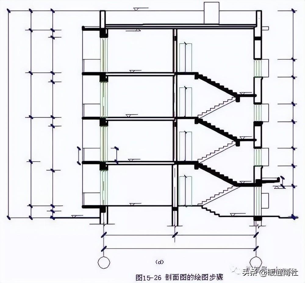 建筑剖面图的剖切位置来源于建筑平面图,选在较为复杂不易表达清楚的部位,画出剖切位置和朝向。