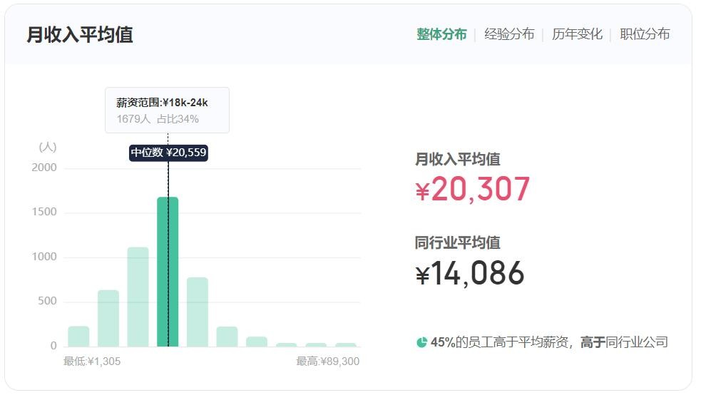 从行业待遇统计来看,技术人员的收入不是最高的,医疗健康相关岗位的员工待遇最好,这和行业特点有关,毕竟是做医疗器械的公司。