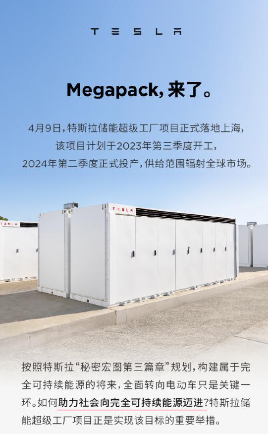 据新华社此前报道,特斯拉 4 月 9 日宣布,将在上海新建一家超级工厂,专门生产该公司的储能产品 Megapack。
