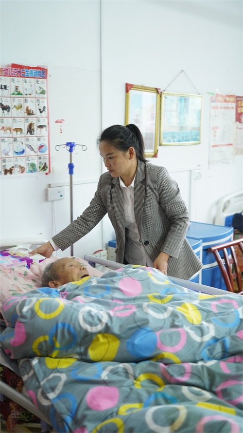 邹倩照顾卧床的失能老人