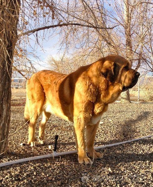 西班牙獒犬,别名:马斯丁犬,英文名:Spanish Mastiff,属于大型犬,具有典型獒犬的外貌,中等比例和分长线结构。非常强壮的肌肉,紧凑的骨骼结构,头部很大和身体覆盖一半的被毛。最重要的是有着机能协调性的平衡,叫声沙哑、低沉、相当洪亮,在很远的距离外都可以听到。