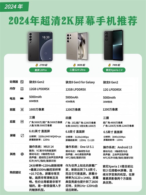 为数不多的2024年超清2K屏幕手机推荐