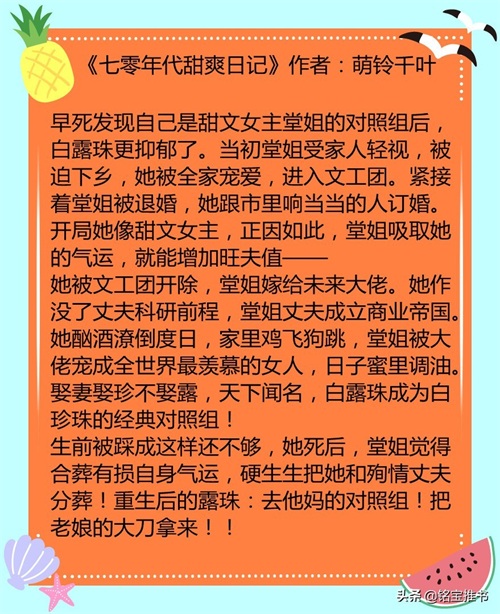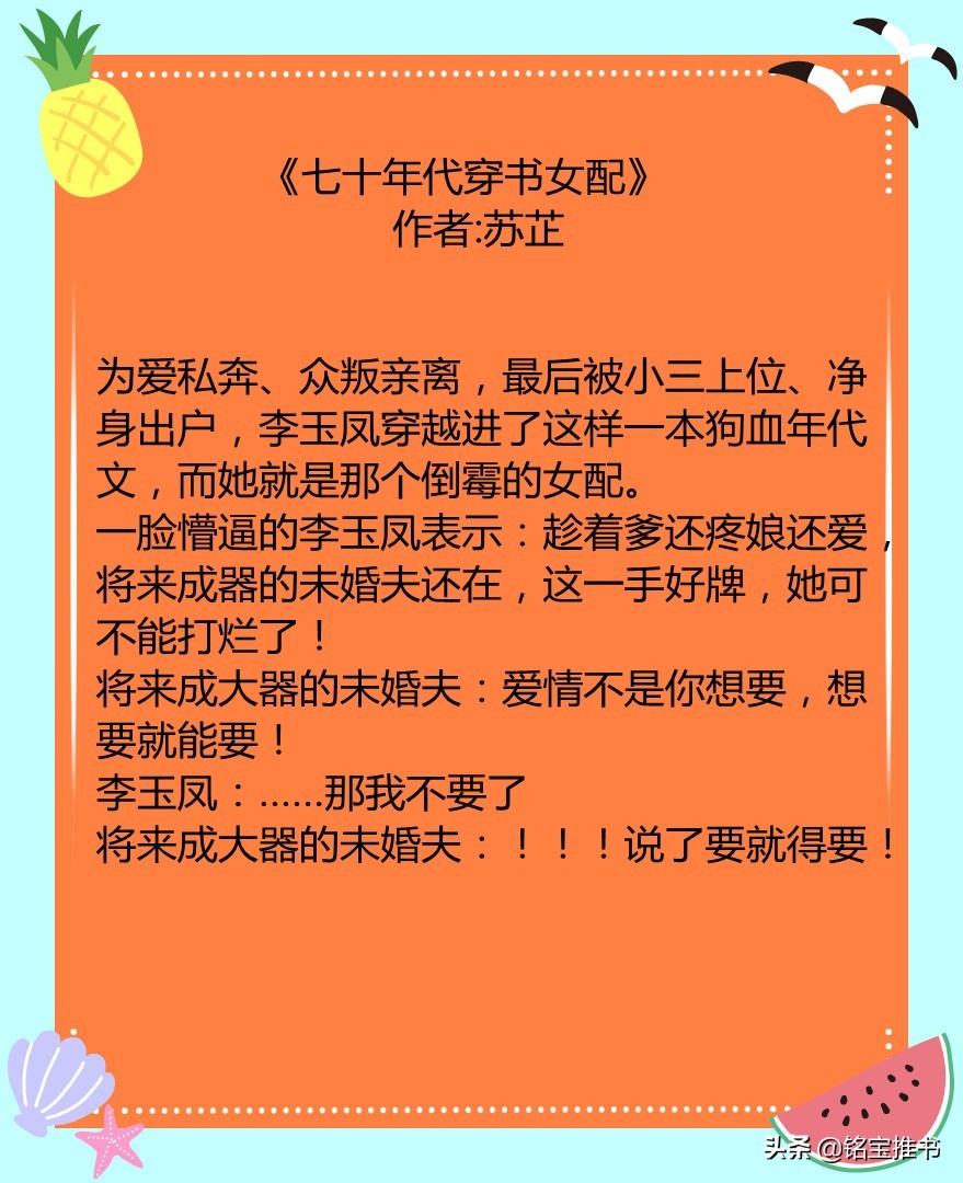 书荒福利!四本高质量年代文,《七十年代穿书女配》超好看