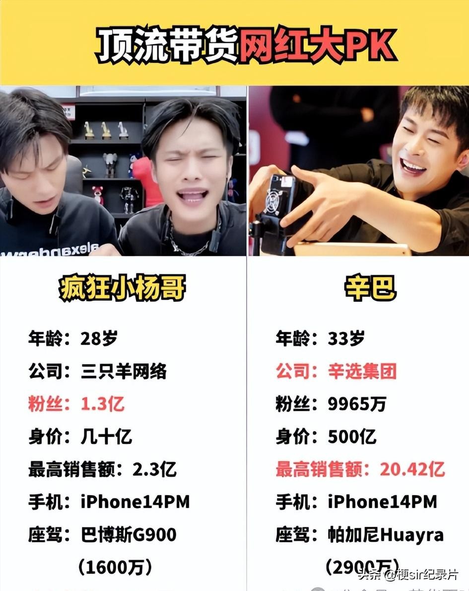 但是从图中我们可以看出这份2023年主播收入排行榜单前三名:小杨哥32亿,辛巴30亿,李佳琦23亿,第四名董宇辉5.2亿,第32名罗永浩8490万,散财童子倪海杉6800万,排名第42位。