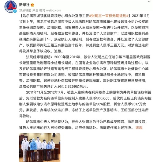 曲婉婷的母亲是前哈尔滨建委副主任,在职期间主管拆迁工作,将国家拨出的拆迁安置补偿款据为己有,贪污了3.5个亿,并转移到国外女儿的身上。案件的最后,曲婉婷的母亲被判处无期徒刑,女儿拿着赃款逍遥法外,和父亲过着奢靡的生活!
