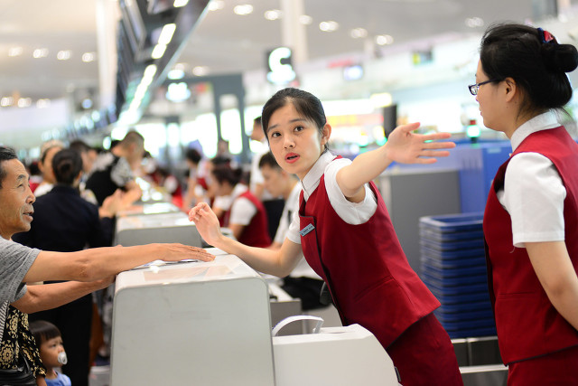 如果要办理托运,就去值机柜台排队吧,这个过程赶在出行高峰时是比较耗费时间的,这时需要身份证。