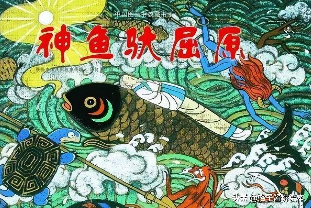 本册讲述广为流传的有名诗人屈原的故事。本册讲述了屈原投江后,被神鱼驮出江面吐露心声的故事。画家运用了楚文化中的漆器、漆画风格为基调来处理画风。