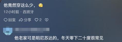 一句“太冷了”便瞬间破防,足见昔日在天津仅着毛衣的抗冻小伙,已然一去不复返了。