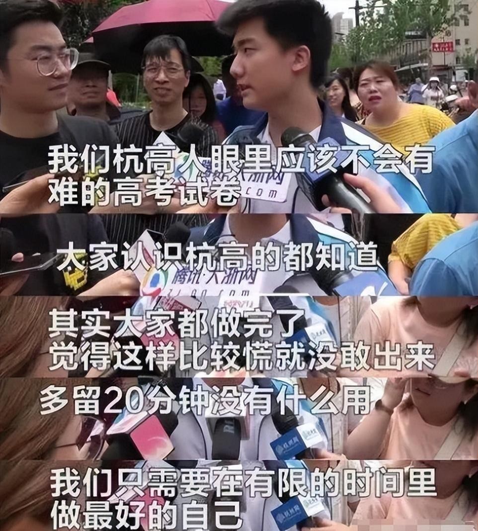 "今年的高考题目实在太小儿科了,对我们杭高的学生来说,就跟喝水吃饭一样简单。"