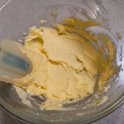 7、现在来做饼干。将75g黄油+58g糖粉放入大碗中