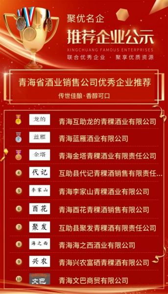 双循环下,消费将会在国民经济中扮演越来越重要的角色。作为大消费门类之一的酒类如今已经利税过千亿,白酒从1980年的200万吨到1995年800万吨,再到了2016年的1400万吨以上,整个酒类行业发展取得了很瞩目的成绩,同时也在进行曲折中前进。虽然酒行业的发展起起伏伏,但是我们不可否认它是一个赚钱的行业,因为中国白酒已经融入中国人的骨髓。为了促进企业健康发展,“聚优名企”通过征集广大网友对企业支持数据,选出了青海省酒业销售公司优秀企业,现将对征选结果予以公示:
